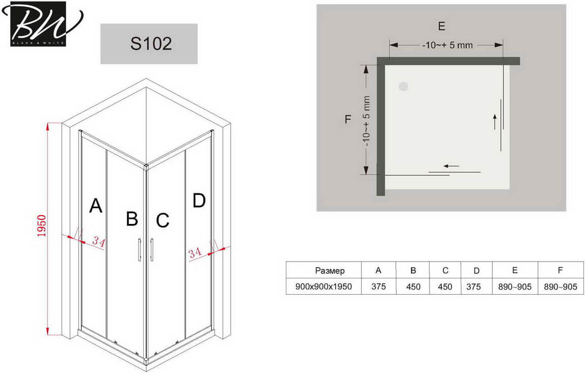 Душевой угол Black & White Stellar Wind B&W S102 90х90х195 УТ-00074151