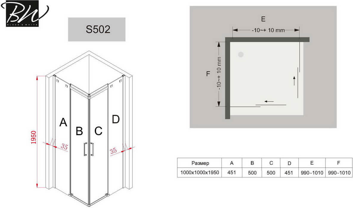 Душевой уголок Black & White Stellar Wind S502 100х100х195 УТ-00074167