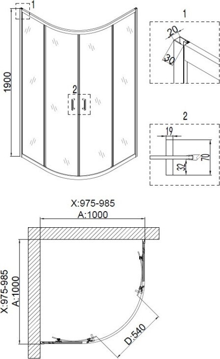 Душевой уголок Niagara Nova 100x100x190 NG-6807-08 BLACK