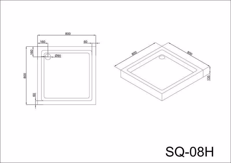 Поддон для душа Black & White Stellar Wind SQ-08H 80x80x13.5