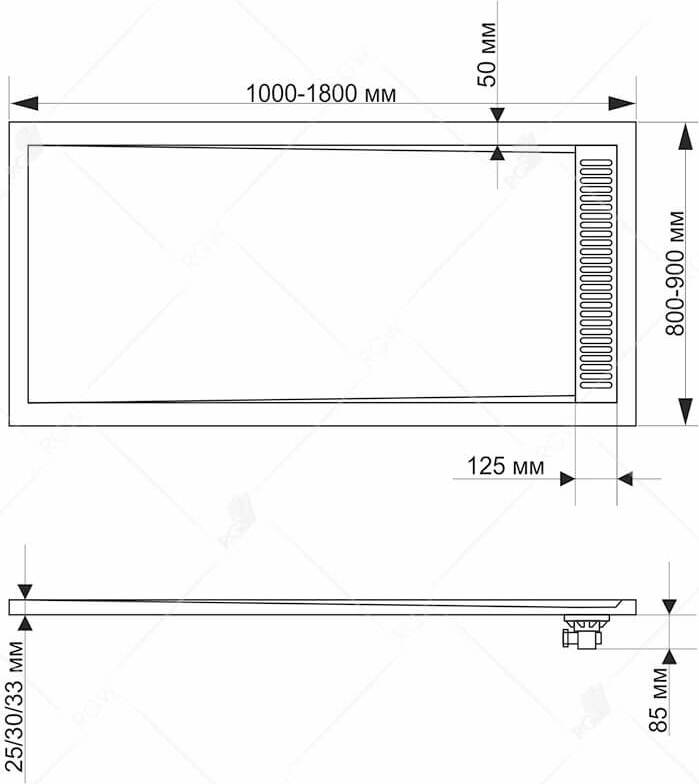 Душевые поддоны из искусственного камня, обладают высокой прочностью и долговечностью. Поверхность поддона рельефная, антискользящая. Накладка из нержавеющей стали.