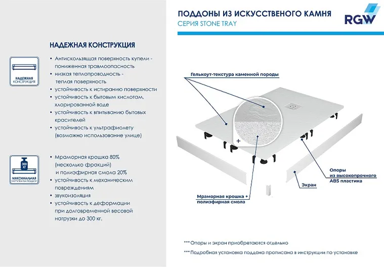 - Поддон для душа - 1 шт. Инструкция - 1 шт.