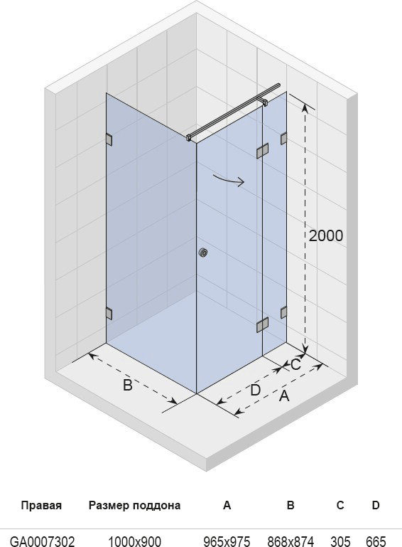 Душевой уголок Riho Artic A203 GA0007302 100x90x200 P правый