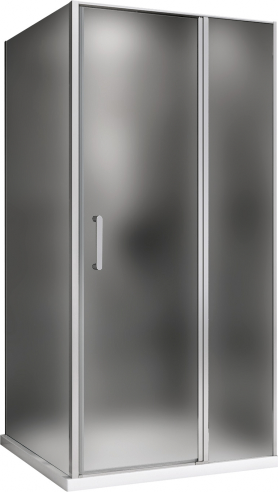 Модель оснащена одной распашной дверью на маятниковой петле с возможностью открытия внутрь и наружу для удобного доступа. Конструкция рассчитана на угловой монтаж, подходит под разные типы планировок. Хромированный профиль и металлическая ручка подчеркивают практичный дизайн, обеспечивают долговечность и простоту ухода. Для установки необходим отдельный низкий поддон.