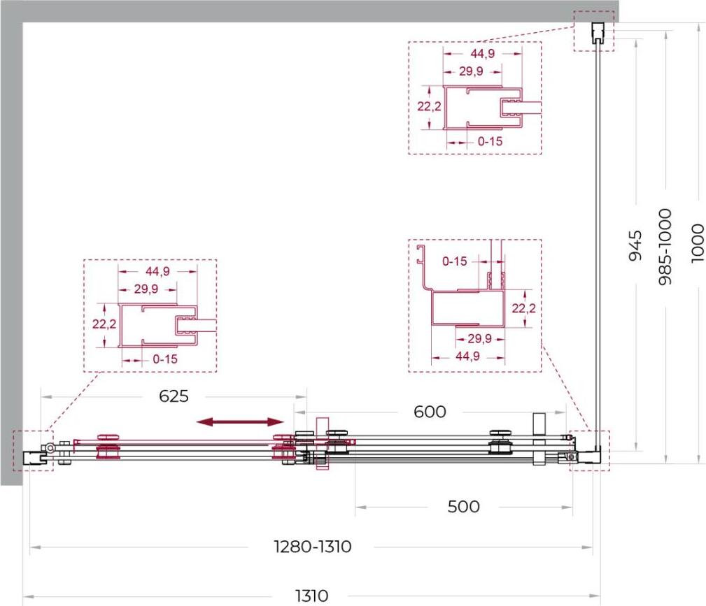 Душевой уголок BelBagno MARINO-2-AH-1-130/100-C-GM профиль оружейная сталь, стекло прозрачное