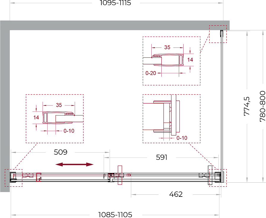 Душевой уголок BelBagno SOFT_CLOSE-1-AH-1-110/80-C-Cr профиль хром, стекло прозрачное УТ-00199368