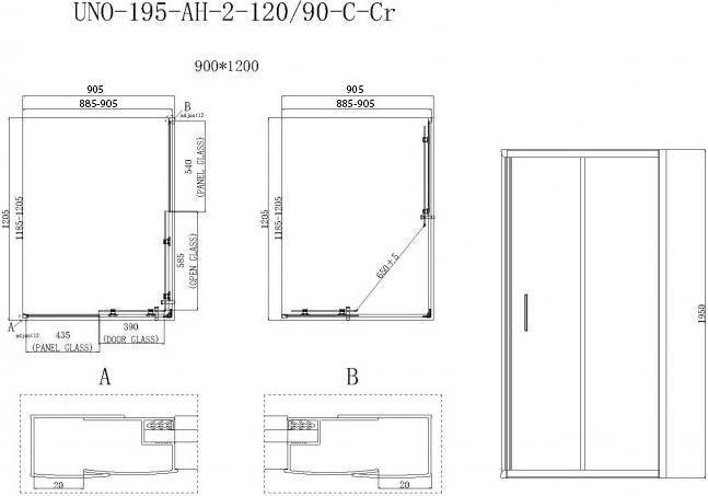 Душевой уголок BelBagno Uno-195 AH 2 120/90 C Cr УТ-00083657