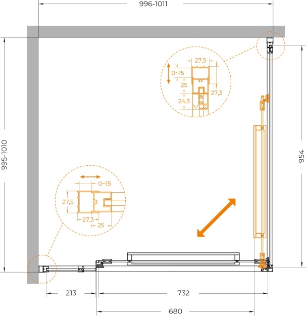 - напольный, на поддон, пристенный в угол