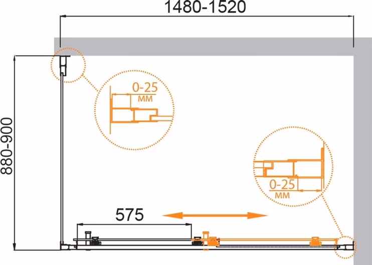 Регулировка ширины: предусмотрена за счет боковых профилей