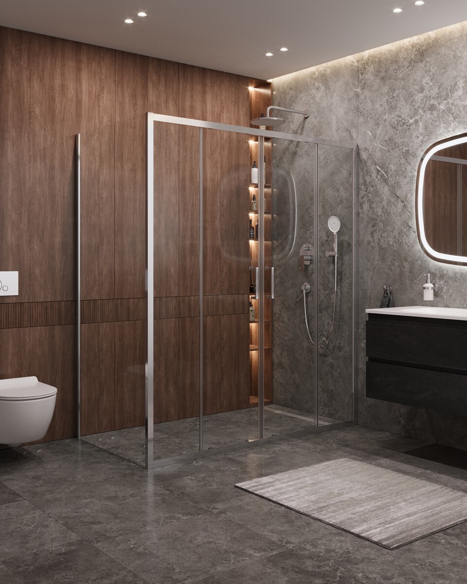 Душевой уголок Cezares MOLVENO-AH-2/1-170/100-C-Cr-IV прозрачный, хром УТ-00185826