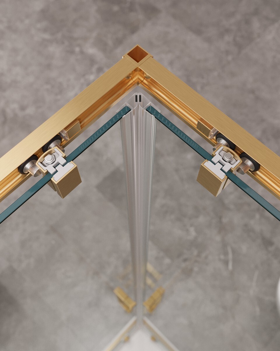 Душевой уголок Cezares Molveno-AH-21-90+20-C-BORO-IV 110х90 стекло прозрачное, профиль брашированное золото УТ-00185838