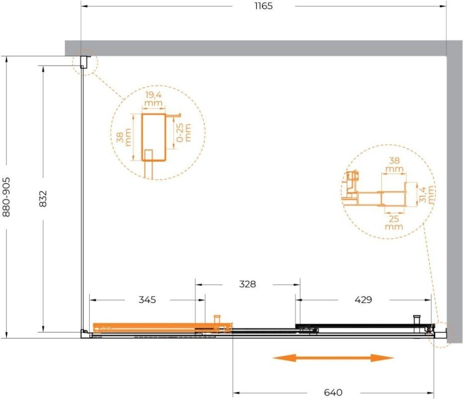 Ширина изделий до 180 см с уникальной возможностью создания еще больших размеров за счет дополнительных неподвижных элементов шириной 20 и 30 см.