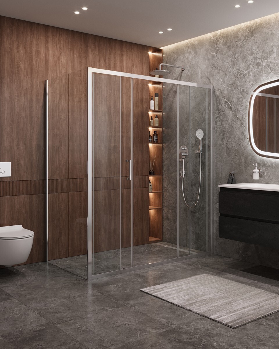 Душевой уголок Cezares MOLVENO-AH-2/1-170/90-C-Cr-IV прозрачный, хром УТ-00185897