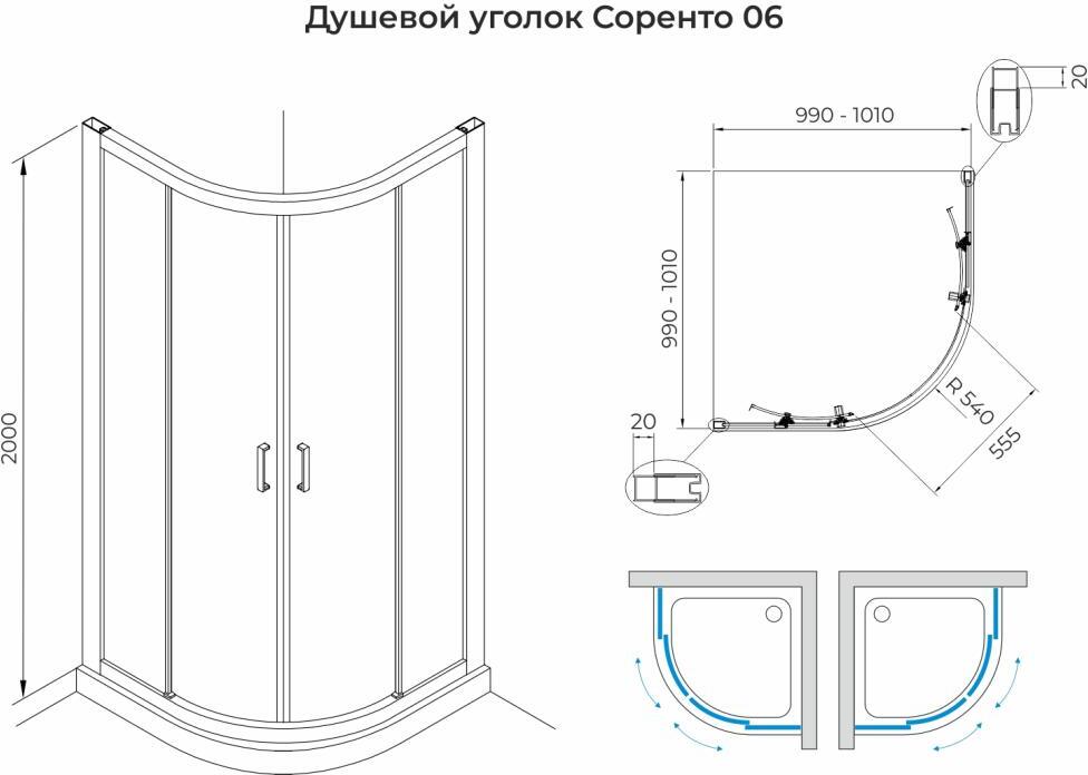 Душевой уголок Terminus Соренто 06 6ES100х100C 1000х1000х2000 хром УТ-00193391