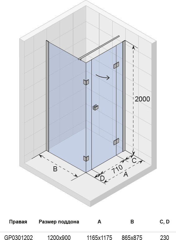 Душевой уголок Riho Polar P205 GP0301202 120х90х200 R правый