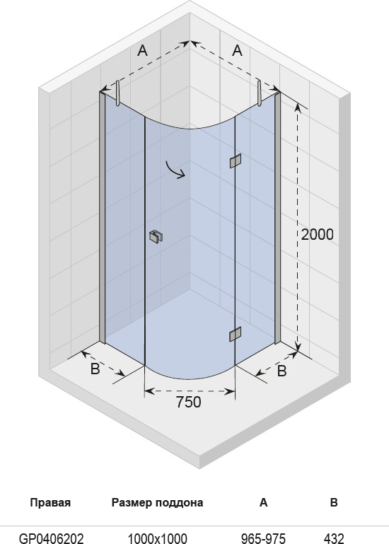 Душевой уголок Riho Polar P308 GP0406202 100х100х200 R правый УТ-00025575