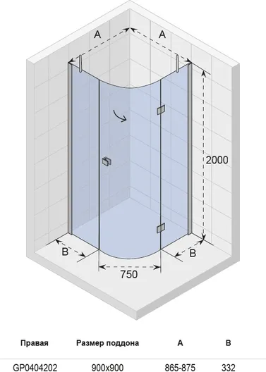 Душевой уголок Riho Polar P308 GP0404202 90х90х200 R правая УТ-00025573