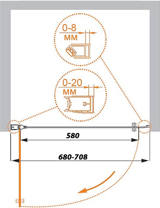 - Душевая дверь в нишу - 1 шт. Инструкция - 1 шт.