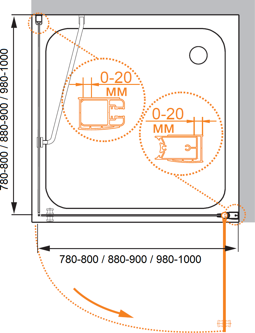 - на поддон, в нишу, на стену