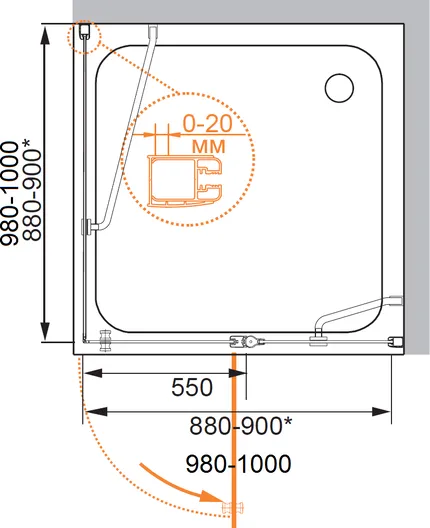 - на поддон, в нишу, на стену