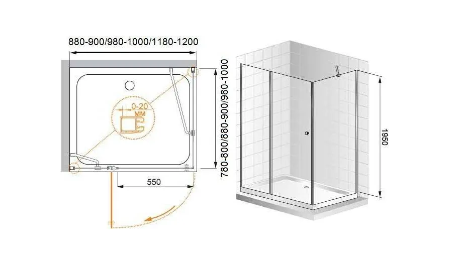 - Душевой уголок - 1 шт. Инструкция - 1 шт.