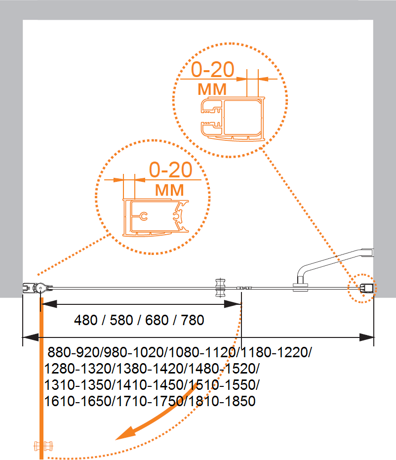 Душевая дверь в нишу Cezares ELENA-W-B-11-60+90-P-Cr-R