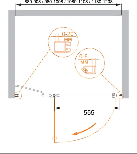 - Душевая дверь в нишу - 1 шт. Инструкция - 1 шт.