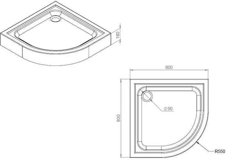 Размер 800x800x160 мм, R - 550 мм, материал акрил. Сифон и ножки в комплекте.