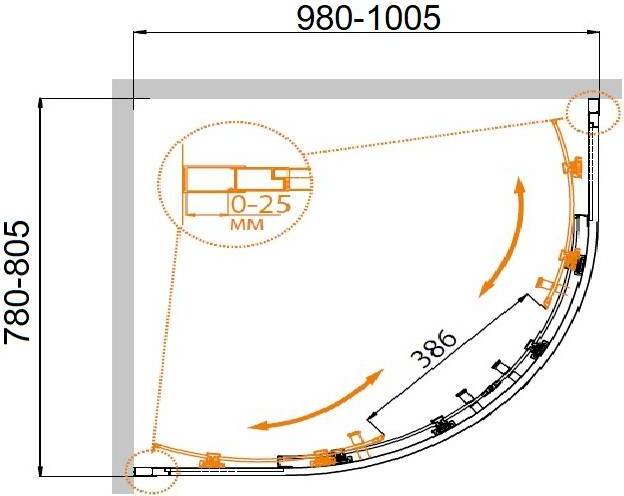 - на поддон, пристенный в угол, в нишу