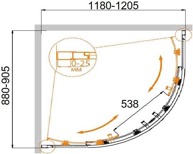 Душевой уголок Cezares Molveno RH 2 120/90 C Cr IV стекло прозрачное УТ-00057132