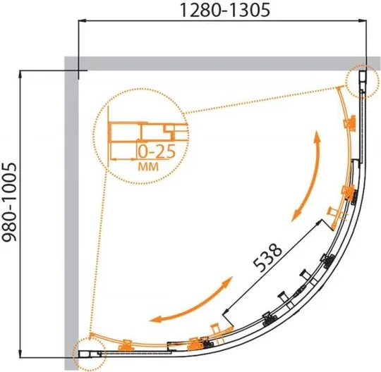 Душевой уголок CEZARES MOLVENO-RH-2-130/100-P-Cr