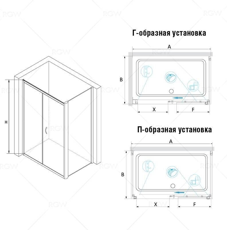 Душевой уголок прямоугольный RGW PA-42 состоит из душевой двери RGW PA-12 и боковой панели RGW Z-01.