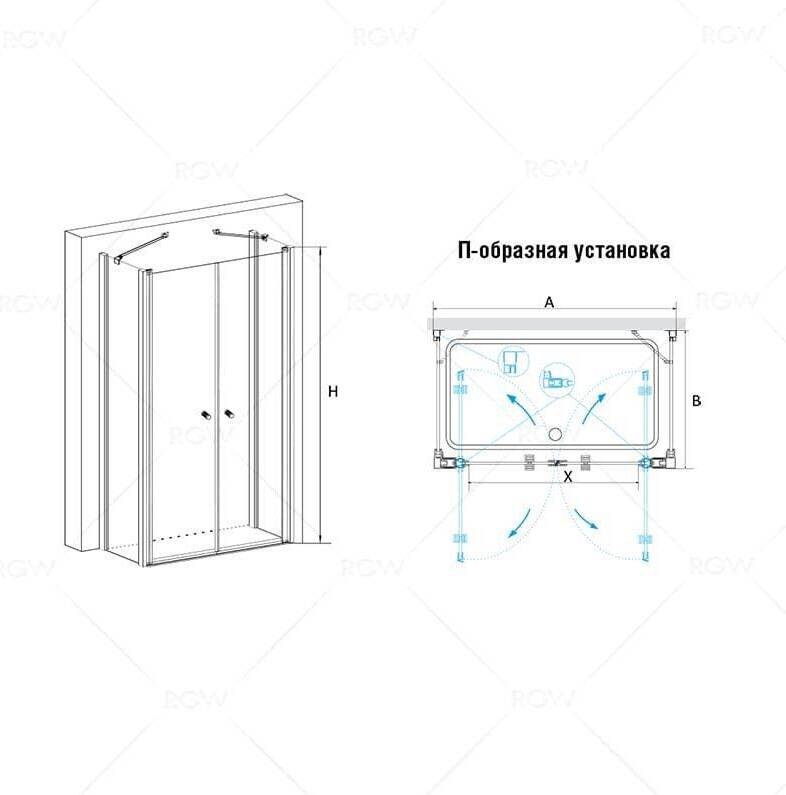 Душевой уголок прямоугольный RGW PA-47 состоит из душевой двери RGW PA-04, боковой панели RGW Z-12, профиля A-11 и верхнего держателя. В комплекте нижняя пороговая планка. Трап или поддон приобретается отдельно.
