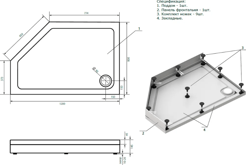 - Поддон в комплекте: