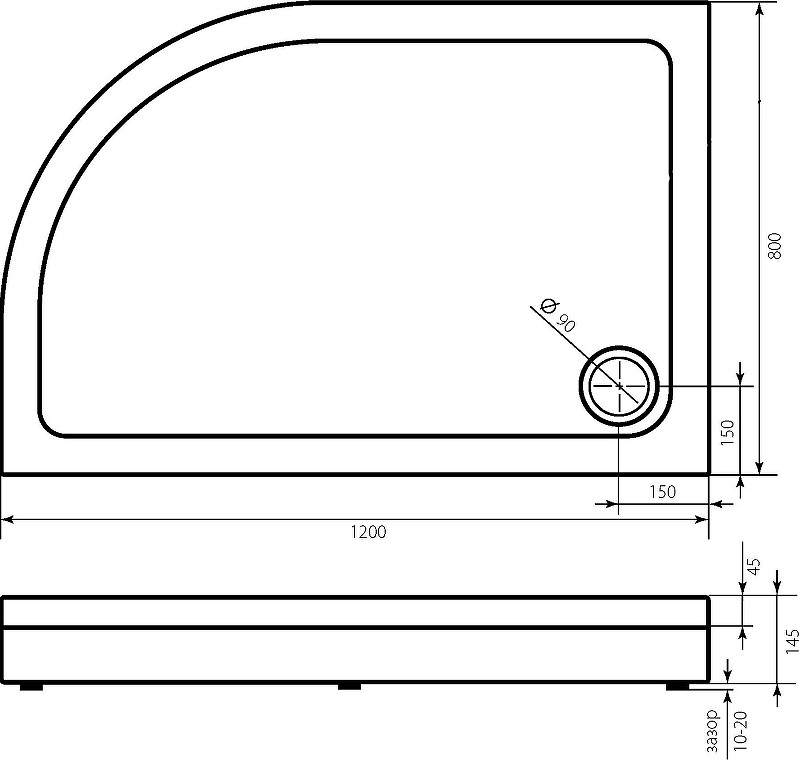 Поддон для душа BAS Раунд R ПН00069 левый УТ-00118261
