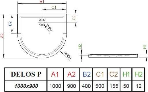 Поддон для душа Radaway Delos P1000 4Z19035-03N, 1000*900*55