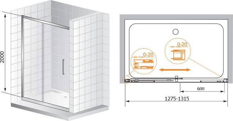- Душевая дверь в нишу - 1 шт. Инструкция - 1 шт.