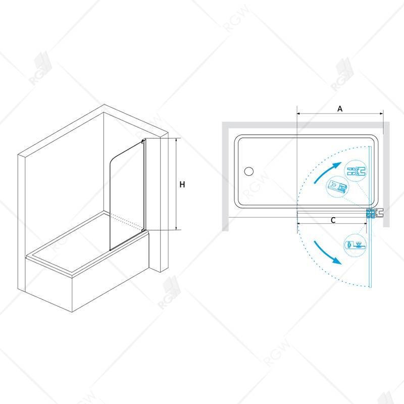 Шторка на ванну, маятниковая дверь.