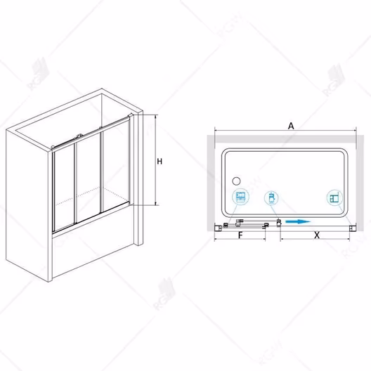 Шторка на ванну раздвижная трехстворчатая.