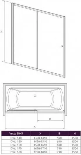Шторка для ванны Radaway Vesta DWJ 209118-01-06, 180, хром, стекло фабрик СТ045952