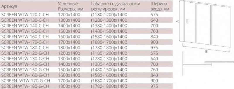 Шторка на ванну BAS Screen ПД00095 WTW-170-C-CH 170x140 стекло прозрачное УТ-00052252