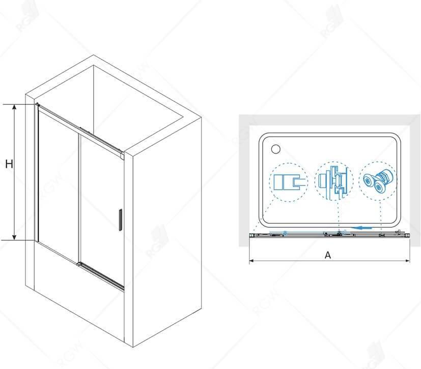 Шторка на ванну, сдвижная дверь с автодоводчиком. Толщина закаленного, безопасного стекла 6 мм.