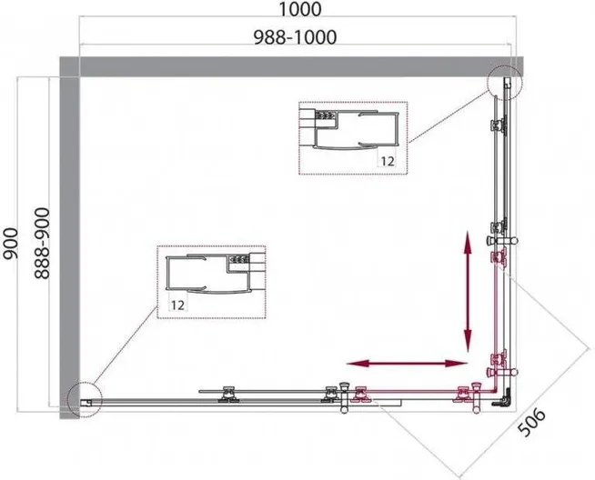 Душевой уголок BelBagno UNO-195-AH-2-100/90-P-Cr стекло рифленое УТ-00121161