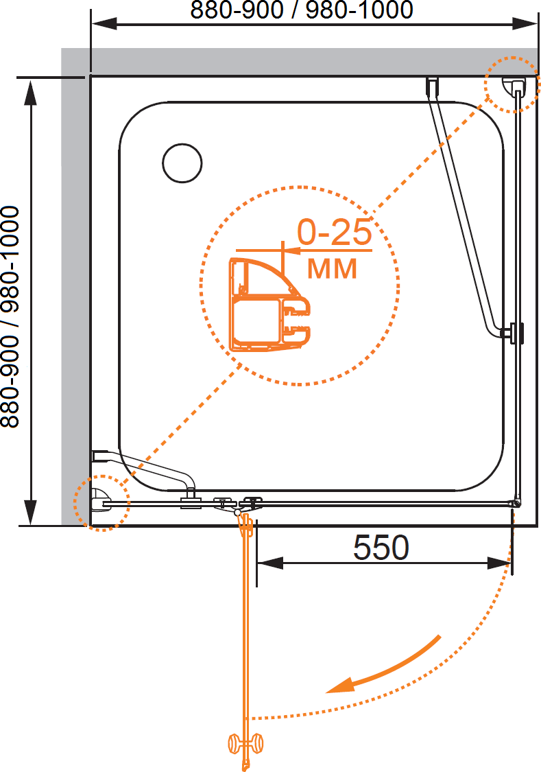 - напольный, на поддон, пристенный в угол