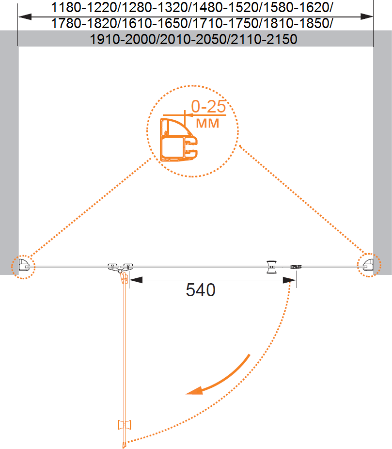 - Душевая дверь в нишу - 1 шт. Инструкция - 1 шт.