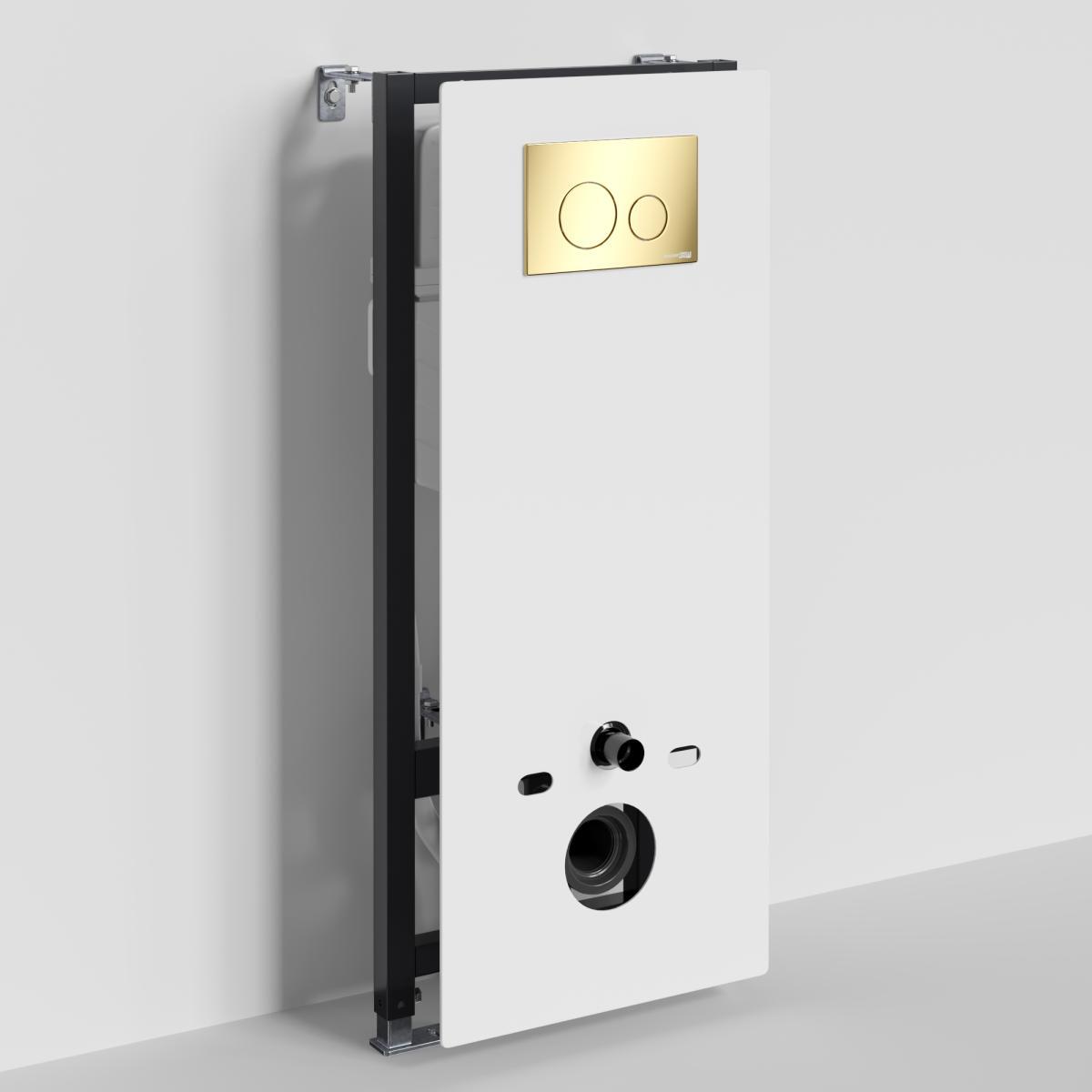 Инсталляция для унитазов WasserKRAFT Abens 20TLT.010.ME.WH.PG02 кнопка глянцевое золото