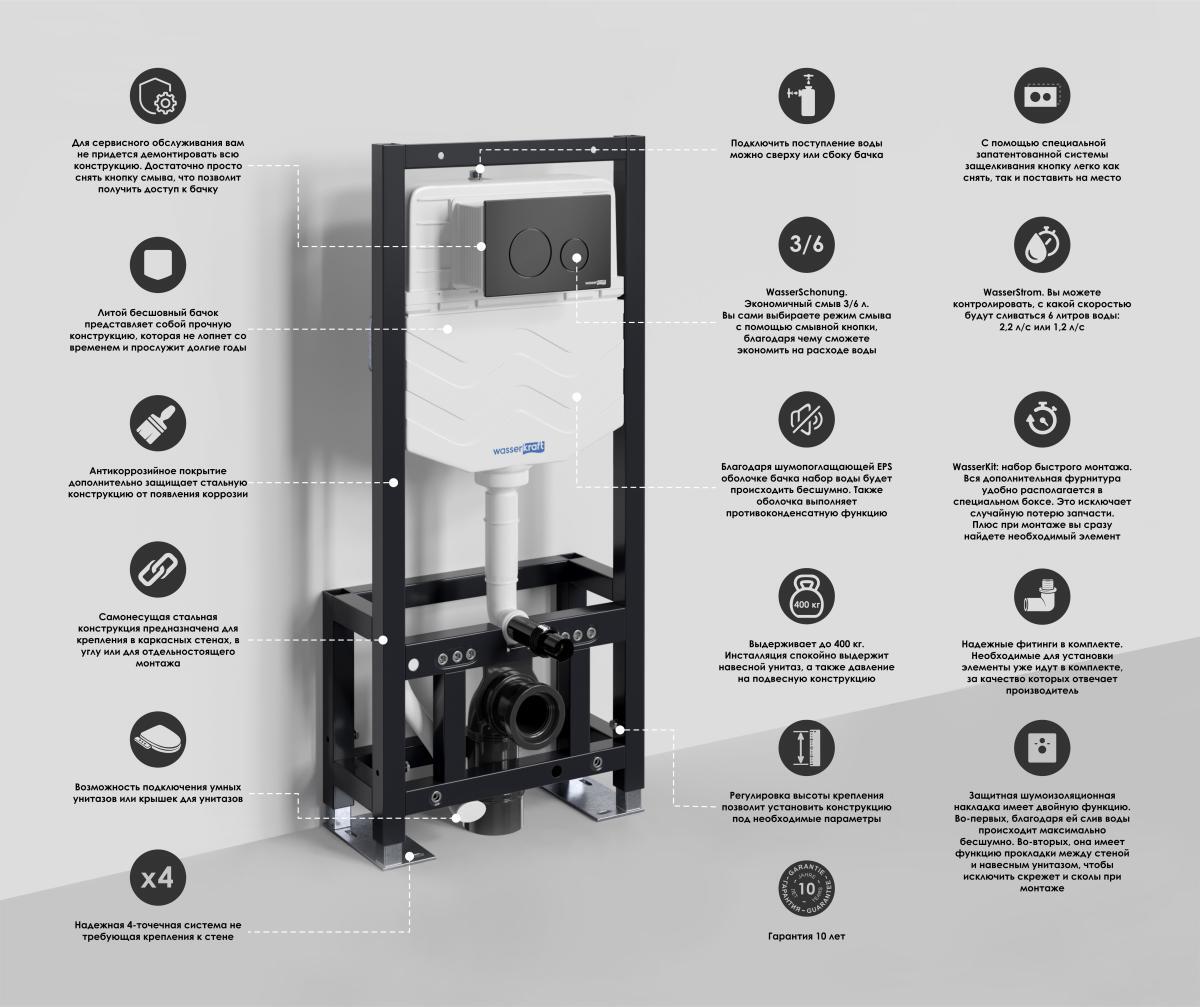 Инсталляция для унитазов WasserKRAFT Dill 61TLT.010.ME.MB02 с черной матовой кнопкой смыва