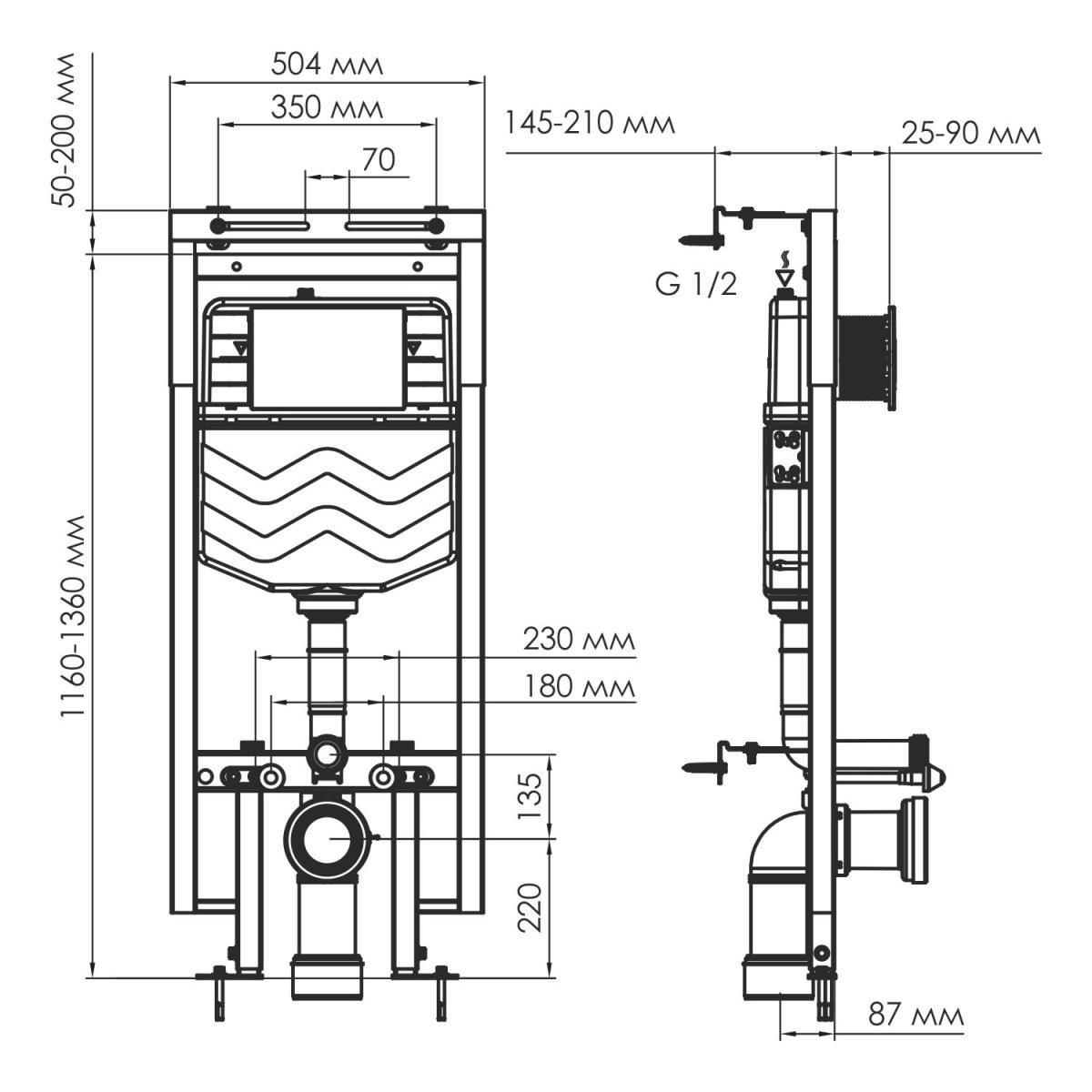 Инсталляция для унитазов WasserKRAFT Dinkel 58TLT.010.ME.PB02 с черной глянцевой кнопкой смыва