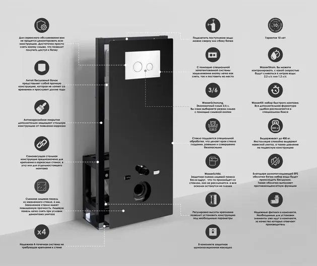 Инсталляция для унитазов WasserKRAFT Glan 66TLT.010.ME.BL.WH01 с белой кнопкой смыва УТ-00178081