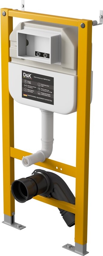 Инсталляция D&K - это система креплений и приспособлений, позволяющих произвести установку подвесного унитаза. Крепится она к стене или за специальным декоративным коробом. На раму устанавливается чаша подвесного унитаза, сливной бачок, различные приспособления и механизмы, вентили и краны, предохранительные клапаны. Также система инсталляции позволяет подключать трубы для подачи и отведения воды. Особенности системы инсталляции D&K: